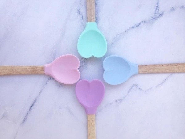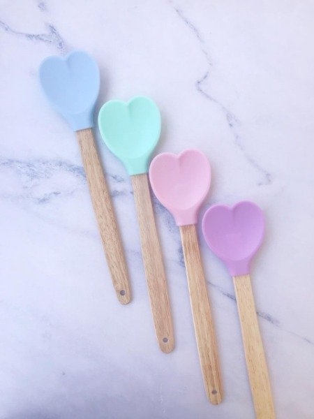Cuchara de silicona en forma de corazón con mango de madera